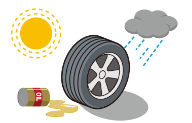 タイヤの主成分であるゴムは、水分、紫外線、熱、そして油分に弱い性質を持っています。